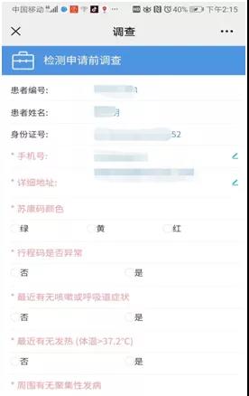第三步:点击后进入如下界面,如实填写“流行病学史调查”后提交。